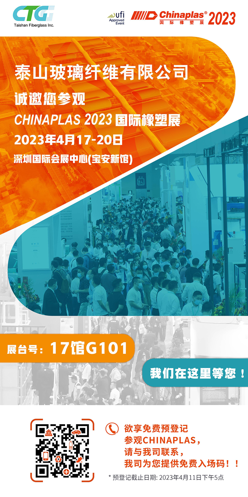 CHINAPLAS 国际橡塑展盛大重启,2023年4月17-20日,泰山玻纤期待与您相约深圳国际会展中心(宝安新馆)!